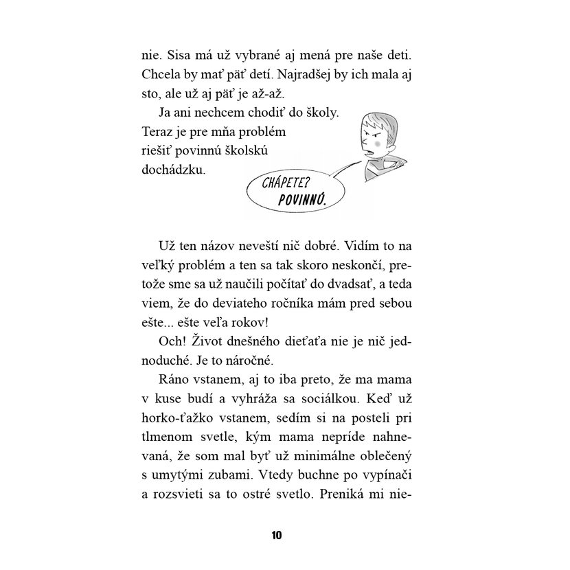 Mama mi často hovorí, že nik učený z neba nespadol. Verím jej, ibaže v škole sa mi Patrik stále vysmieva, že som hlúpy. Ešteže mám kamarátku Sisu, ktorá sa ma vie zastať. A najlepšieho brata na svete. Pravdaže aj mamu a ocka. To je moja najväčšia istota. Pri nich si už začínam veriť, že to všetko zvládnem: učenie, školu aj spolužiakov.