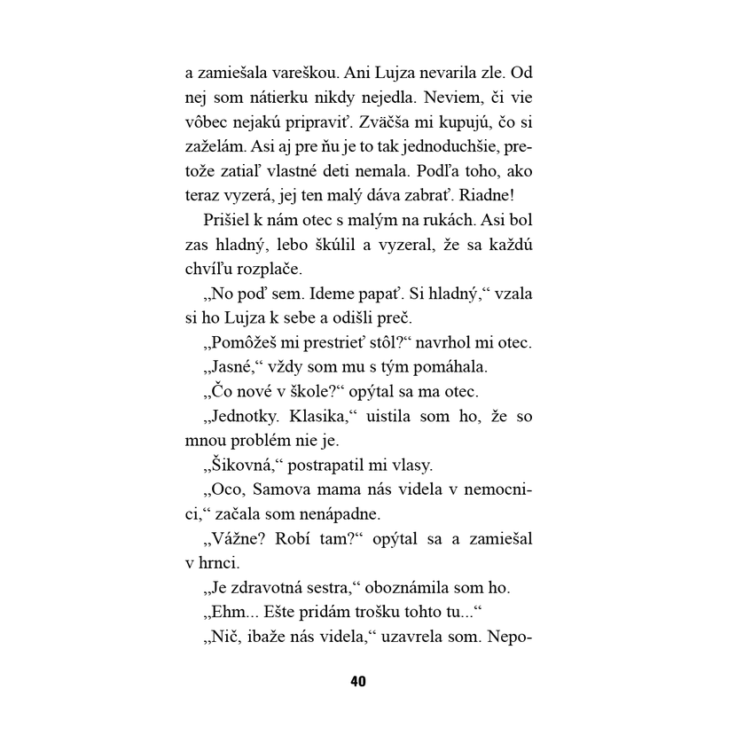 Vo svete dospelých je často všetko priveľmi zložité a komplikované. Na nič sa nás nepýtajú, iba nás postavia pred hotovú vec. Nikto sa ma nepýtal, či chcem, aby sa naši rozviedli a už vôbec nikto sa nezaujímal, či chcem byť veľkou sestrou môjho polobrata. A teraz je tu a všetko je hore nohami. Začali sme misiu s názvom: Boj o prežitie! Ešteže mám na svete moju úžasnú kamošku Miu a najlepšieho psa na svete Vianočku. Spolu sme tím, ktorý zvládne všetky prekážky.