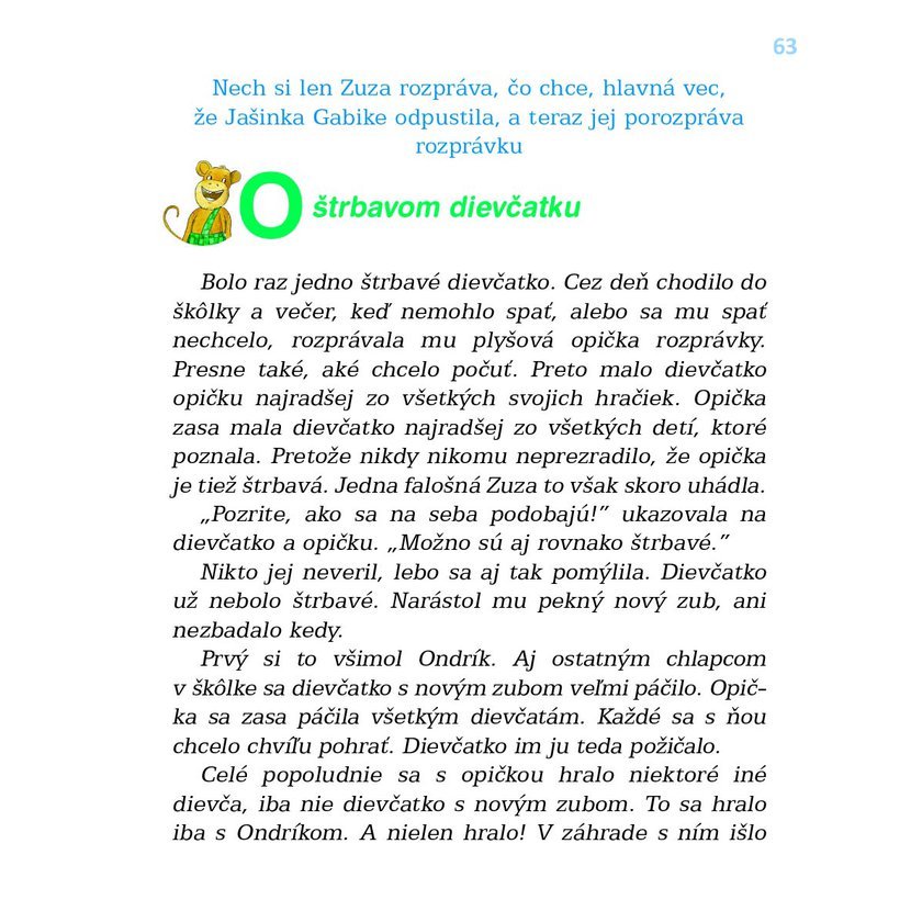 Niekedy si úlohy vymenia a opička vymýšla príbehy Gabike. V knihe sú aj veselé básničky.